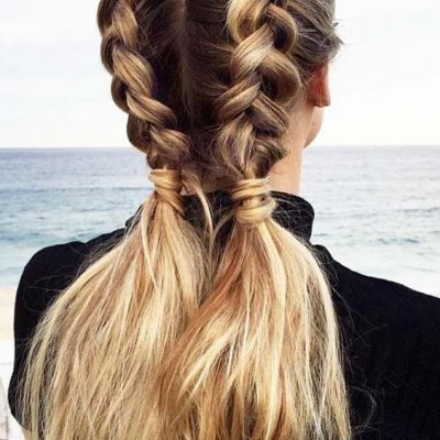 Who can resist the ease and simplicity of braids? Seriously, get out of the pool and braid your wet hair into these cool twists. It will dry messy which keeps this look extra boho. Keep them only half braided like the first image, or stack them up high like the second. Either way, your hair will be out of your face but you’ll still look effortlessly pretty.