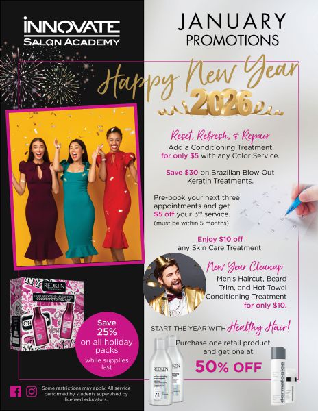Our student salon, skincare center, and barbershop are sophisticated and inviting. Here you can relax while our students pamper you with services from our full suite of salon, spa, and barber services utilizing professional products for a minimal price. View our current promotions!